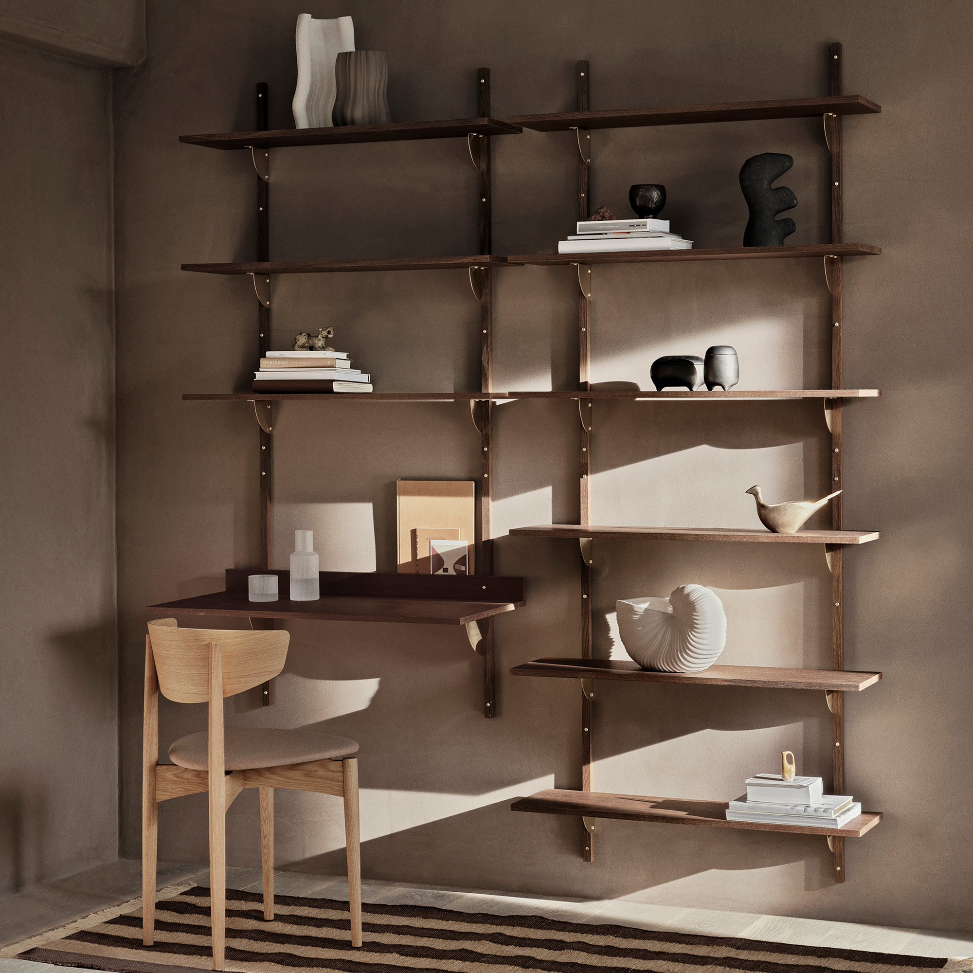 Shelves: smoked oak veneer with MDF core